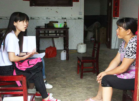 志愿者走訪(fǎng)村民做問(wèn)卷調(diào)查